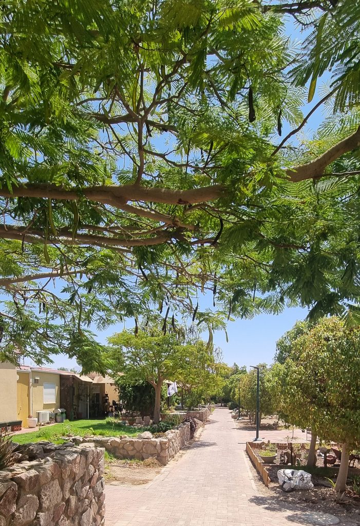 De kibboets is een surrealistische, kleurrijke en groene oase in de snoeihete Negev