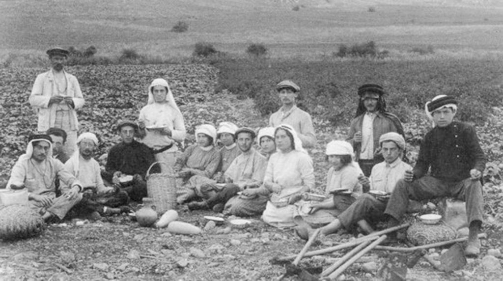 Bewoners van kibboets Migdal, gesticht in 1910